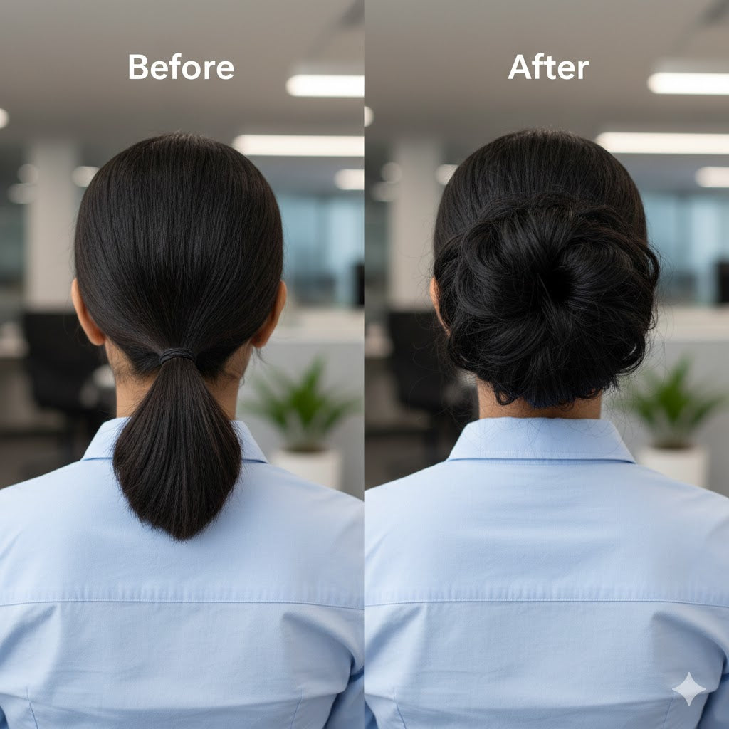 Say goodbye to "bad hair days" and flat ponytails! Whether you’re running late for work, heading to a wedding, or hitting the gym, our Natural Indian Hair Bun gives you that perfect, voluminous look instantly. No salon visit required.